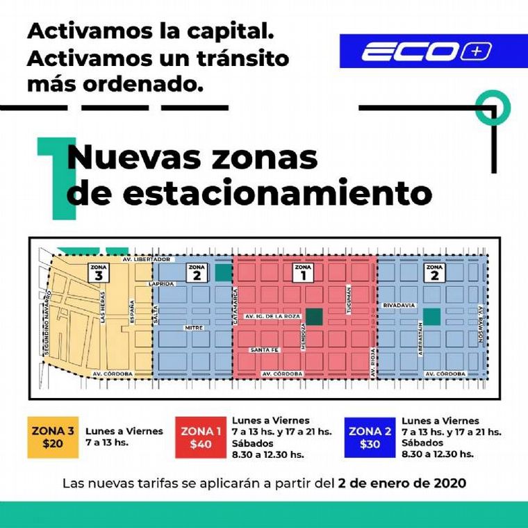 A medida que las zonas controladas se alejan del centro, bajan su precio. La “zona 2”, alrededor del microcentro, tiene un costo de $30 por hora y la 3, más lejana aún, cuesta $20 por hora.