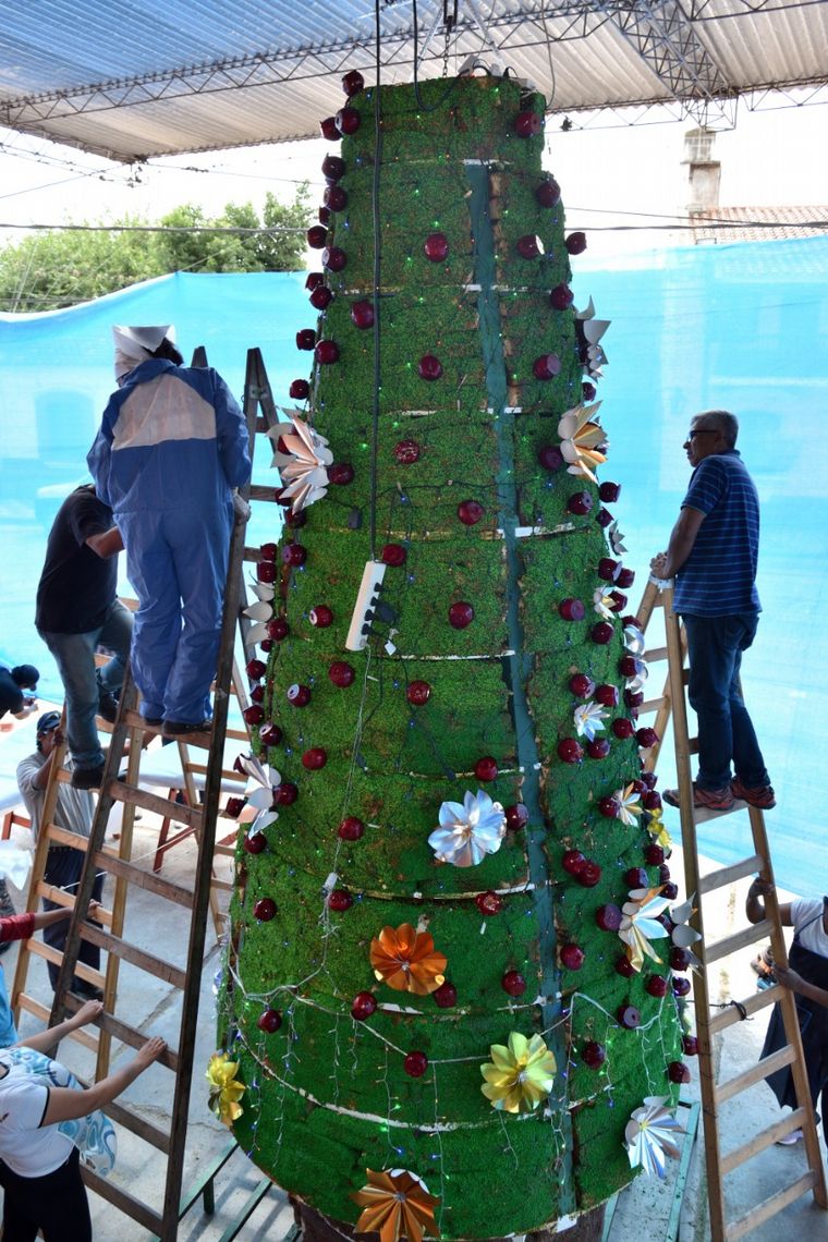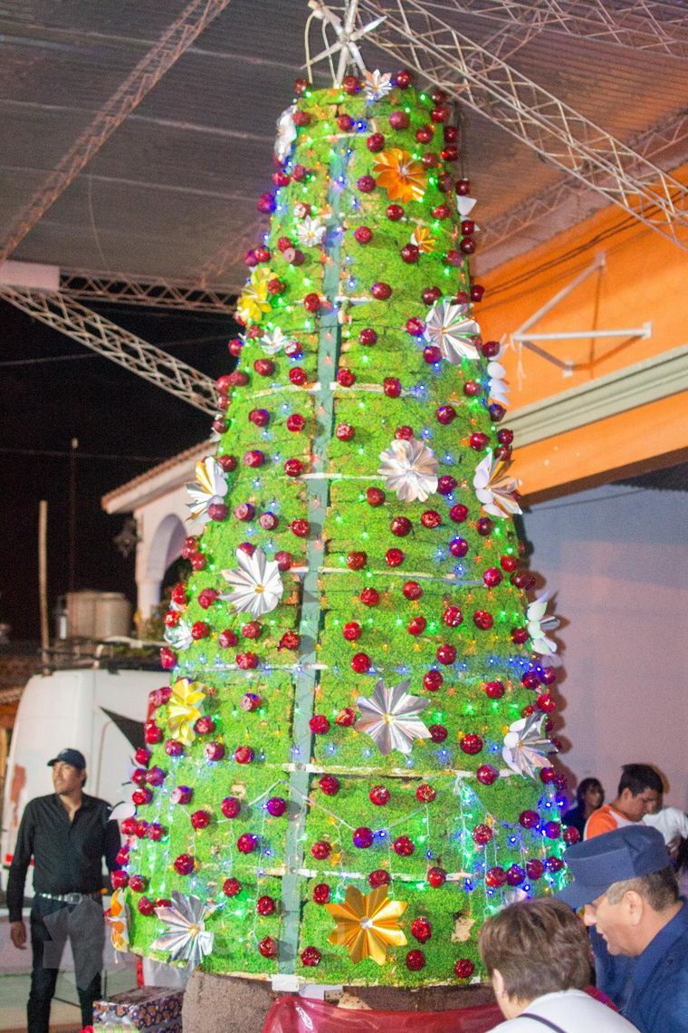 “Los ingrediente los colocan algunas personas del pueblo y panaderías de Salta y se coloca en una estructura de árbol de Navidad y va decorado con merengue y manzanas confitadas”, detalló.