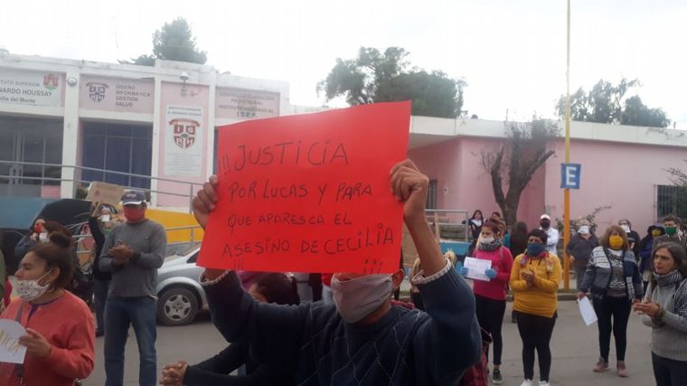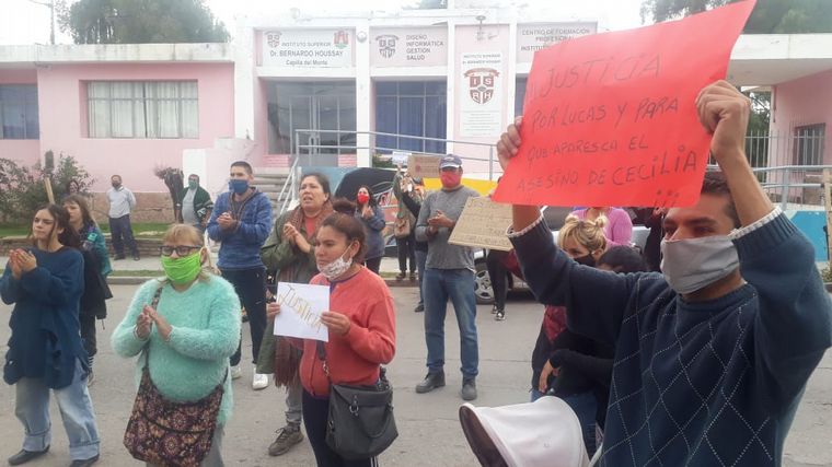 Familiares y vecinos se movilizan por el centro y frente a la comisaría de Capilla del Monte. "Hay un asesino suelto y Lucas preso", reclamó el hermano del acusado. El joven es el único imputado.