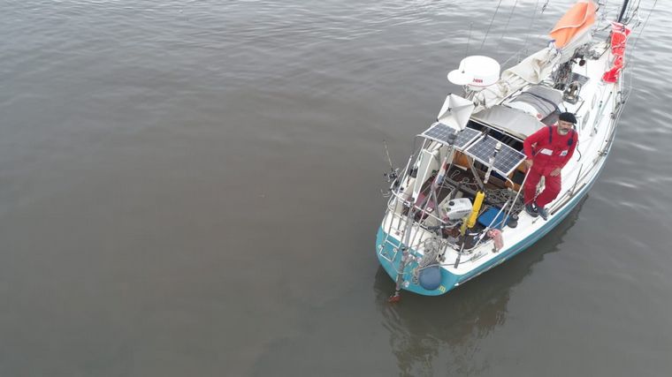 "Escucho el ruido del guinche y sé que estoy en casa", gritó al llegar el navegante, con el sonido de fondo de la maquinaria del Astillero Contessi, ubicado a pocos metros del amarre.
