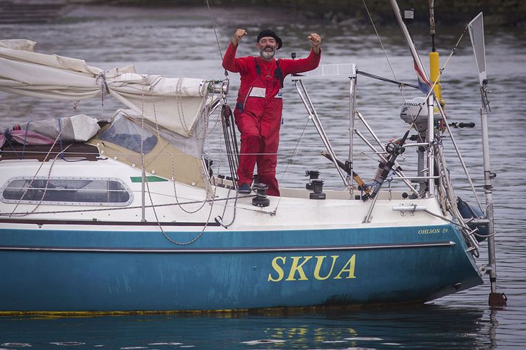 Minutos antes del ingresar al puerto, cuando el relieve de los edificios marplatenses empezó a recortarse entre la bruma a pocos kilómetros, el hombre describió su alegría en un breve video que grabó desde el velero con su teléfono celular y que enviara a sus allegados: "Lo he logrado. Vamos el Skua, el Skuita, una nave".