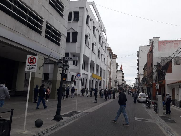 Los salteños comenzaron a realizar a esperar la apertura del canal de cobro desde la madrugada y a muy bajas temperaturas. Durante la mañana de jueves, se registraron hasta 13 cuadras de fila para cobrar los 10 mil pesos.
