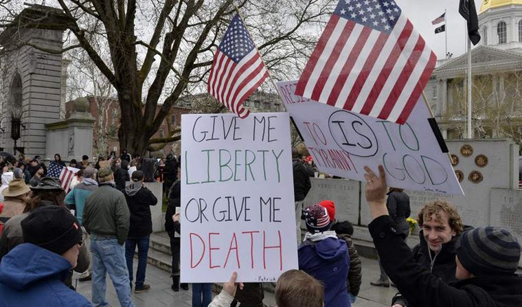 En Michigan, el jueves pasado, civiles se presentaron incluso armados y con chalecos antibalas para protestar en el Parlamento, así como en Washington, donde el confinamiento terminará el próximo 31 de mayo.