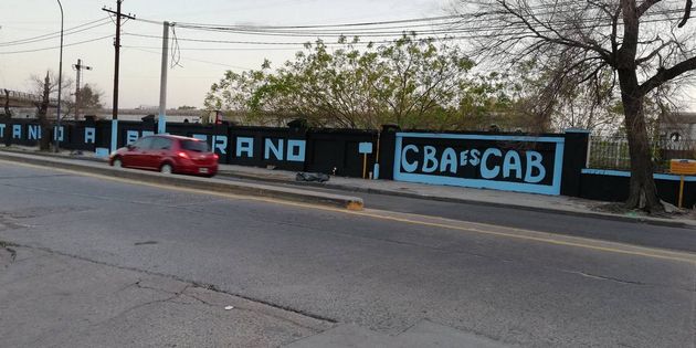Más adelante, se puede observar la leyenda “tengo esa costumbre todos los años de pasarme la vida alentando a Belgrano” de fondo negro y letras celestes. Y remata: “CBA es CAB”.