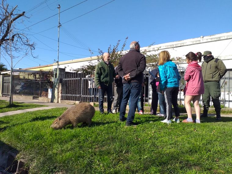 Un grupo de vecinos impidió que este jueves por la mañana Gendarmería Nacional se llevara un carpincho que se pasea por el barrio y es considerado como la mascota del vecindario.