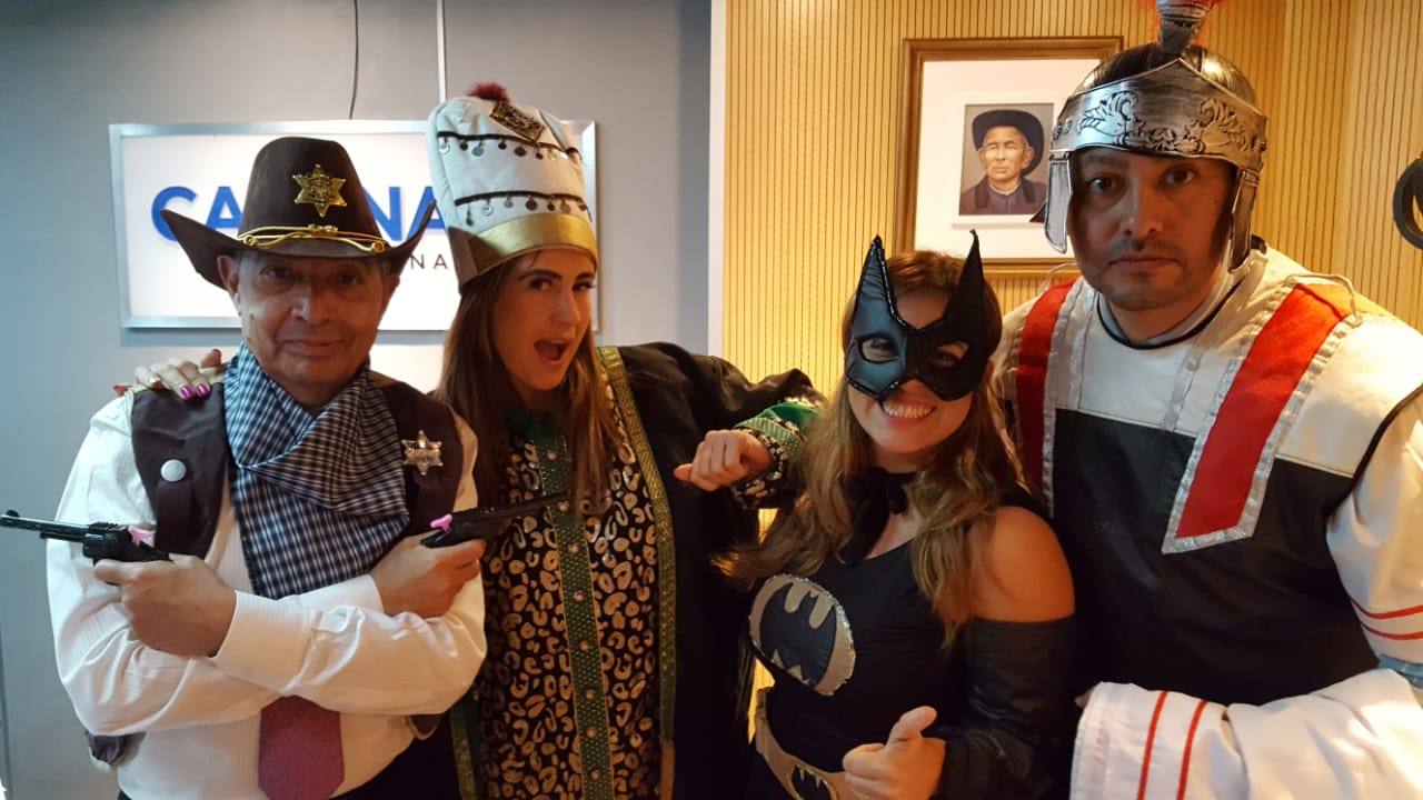 Junto a Mario Pereyra, Geo Monteagudo y Raúl Monti, la conductora se disfrazó para anticipar la fiesta del sábado en Espacio Quality. Mirá las fotos.