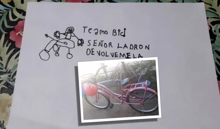 “Nosotros guardamos la bici adentro del garage. Mi papá sale a guardar el auto y me llama: 'Nos robaron la bici de Male'. Hacía un mes que se la habíamos comprado para el Día del Niño. Ayer cumplió años e hizo una carta para que el ladrón le devolviera la bici", contó su mamá, Cynthia Maldonado, a Cadena 3.
