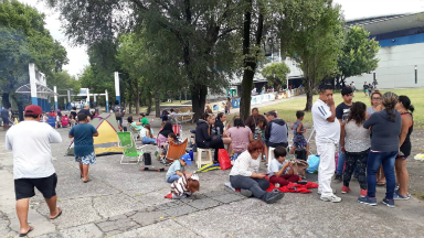 Largas filas de personas acamparon con sus reposeras en el ingreso al estadio Polideportivo Islas Malvinas, ubicado en Juan B. Justo 3525, para retirar las entradas que podrán ser usadas a partir de la semana que viene.