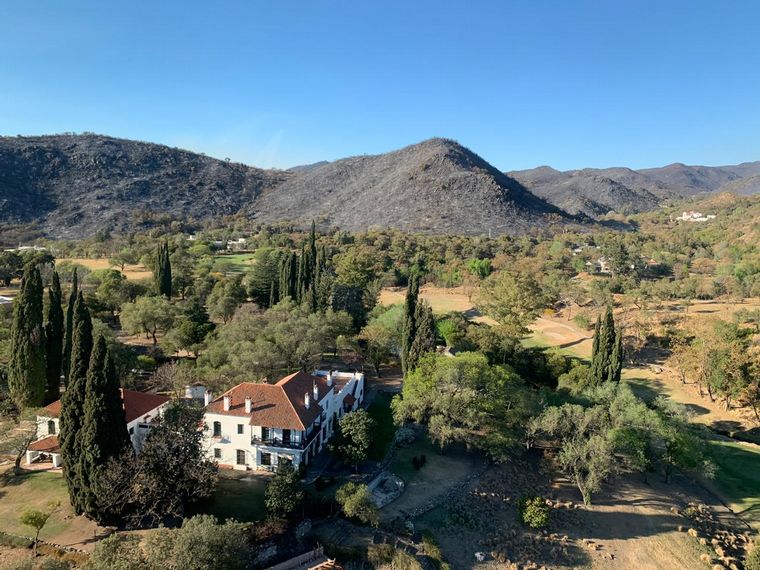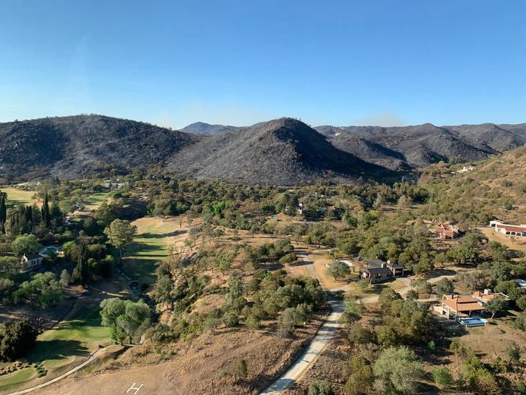 Cadena 3 sobrevoló en el helicóptero de Javier Zuberbuhler, el desarrollista del country El Potrerillo de Larreta, que estuvo en peligro de interfase. Aún quedan focos activos en las montañas. Mirá.