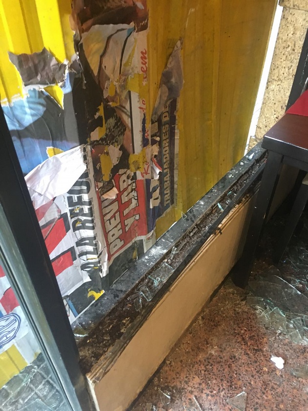 Novo, contó que rompieron vidrios e intentaron robar a los clientes que se encontraban en el bar. Agregó, que gracias a sus empleados y a las fuerzas policiales, pudieron impedir destrozos mayores dentro del lugar.