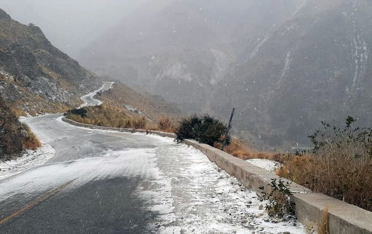 Por ese motivo, las autoridades procedieron al corte de la Ruta 5, camino al Filo de las sierras, dado el congelamiento de la carpeta asfáltica.