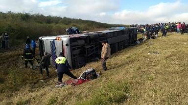 El vuelco de un micro con jubilados en el sur de la provincia de Tucumán dejó 15 muertos y 44 heridos en la mañana de este lunes .