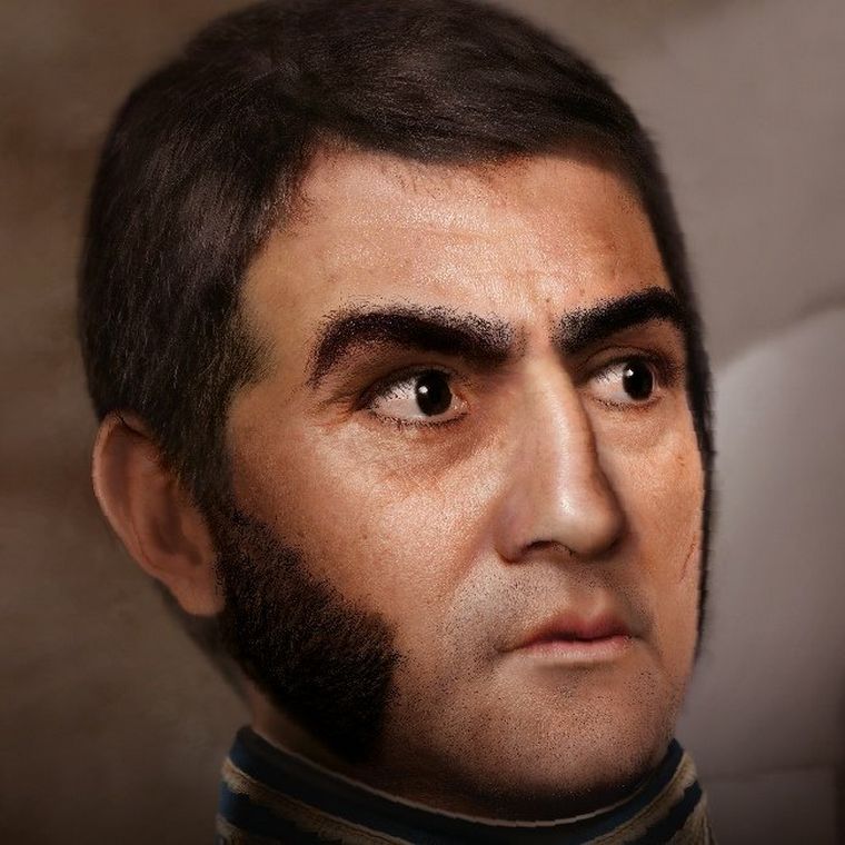 Un trabajo minucioso, casi de cirujano. Como un perro sabueso Ramiro Ghigliazza, un artista gráfico de Pueblo Esther (Santa Fe), comenzó a buscar las respuestas al gran interrogante que le había planteado su hijo Teo, de 7 años: "¿Cómo era la verdadera cara de San Martín?".