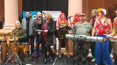 En un acto que contó con las actuaciones de Las Pérez Correa y Tumbadas, en las puertas del Espacio Cultural Museo de las Mujeres, la presidenta de la Agencia Córdoba Cultura, Nora Bedano, destacó la “federalización del evento” que incluye más de 30 localidades de la Provincia, convocando a más de 200 humoristas.