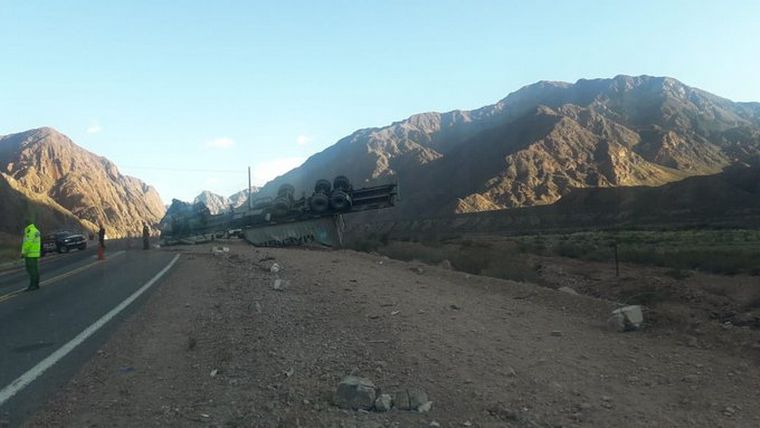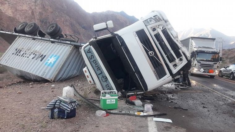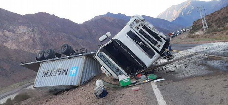 El vehículo pertenece a la empresa Sealand S.A. y a la altura del Cerro Negro, en la localidad de Las Compuertas, se dio vuelta, por causas que se tratan de dilucidar.