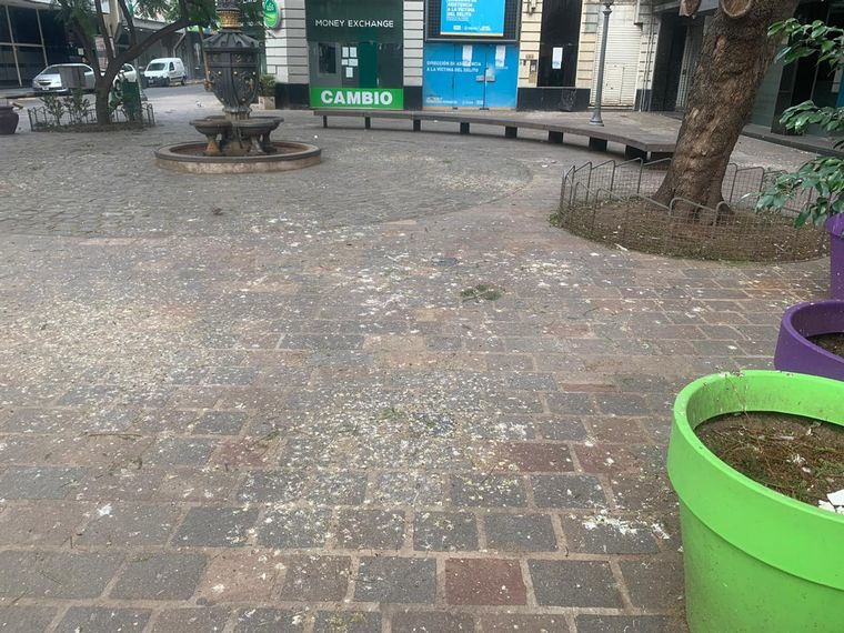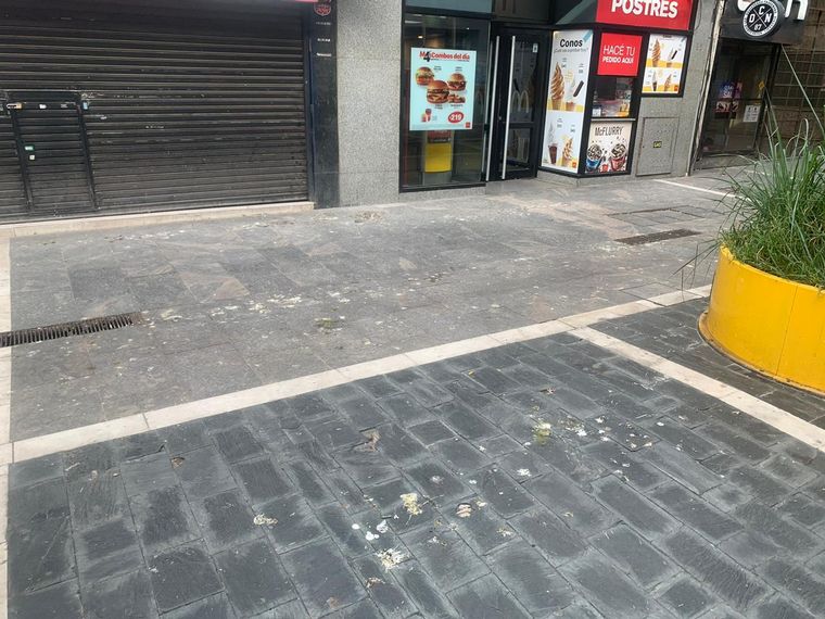 La zona de las calles 9 de Julio y Rivadavia acumulan abundante excremento de paloma por la ausencia del trabajo de las hidrolavadoras. Los pocos comerciantes que abren sus locales denunciaron a Cadena 3 que antes del decreto del Gobierno nacional había limpieza constantes.