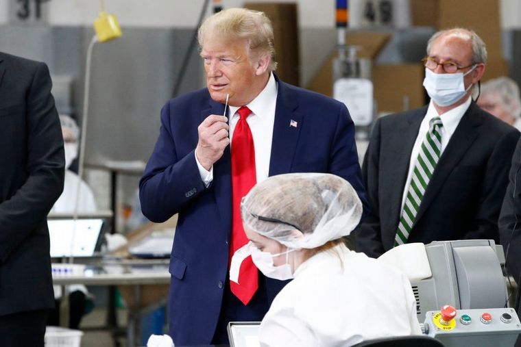 El hecho ocurrió el pasado viernes. Sin barbijo, Trum paseó por la fábrica tocando y hasta oliendo el lote de hisopos médicos cuyo principal destino son las pruebas de coronavirus.
