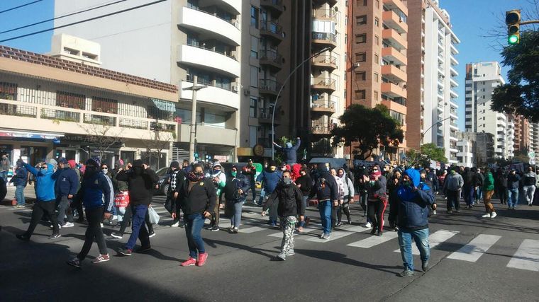 La columna del Sindicato Unión Obreros y Empleados Municipales avanzó por avenida Vélez Sarsfield y luego tomó calle Duarte Quirós con bombas de estruendo y bengalas.