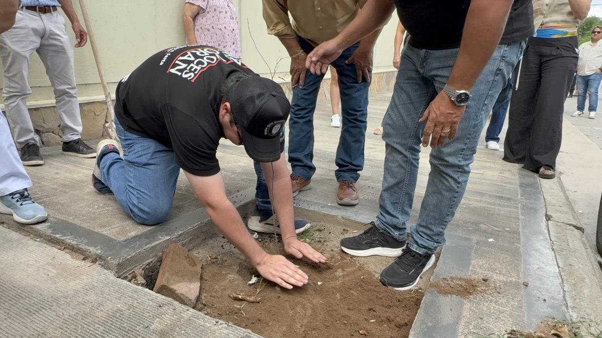 Sin embargo, el secretario de Cultura y Turismo de Cafayate, Daniel Guanca, no dudó en tomar la herramienta para asegurar el futuro del nuevo arbolito.