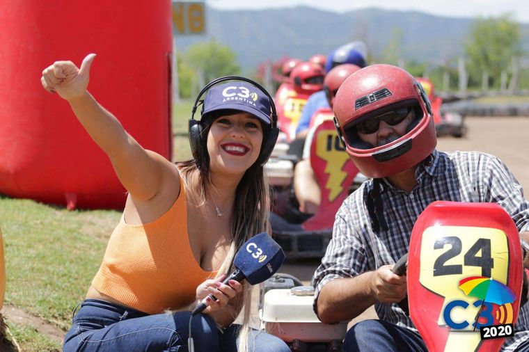 Cadena 3 organizó una competencia de karting en Villa Santa Cruz del Lago e invitó a los artistas más importantes de la temporada.