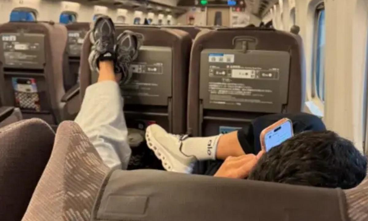 No solo le molestó que la pareja colocara los pies en el respaldo del asiento delantero, sino también que hablaran por teléfono a los gritos. En la fotografía se observa claramente un comportamiento que rompe con las normas de etiqueta del transporte japonés: Wanda aparece completamente reclinada, con sus zapatillas deportivas apoyadas directamente sobre el respaldo del asiento de adelante, y su novio adopta una postura similar.