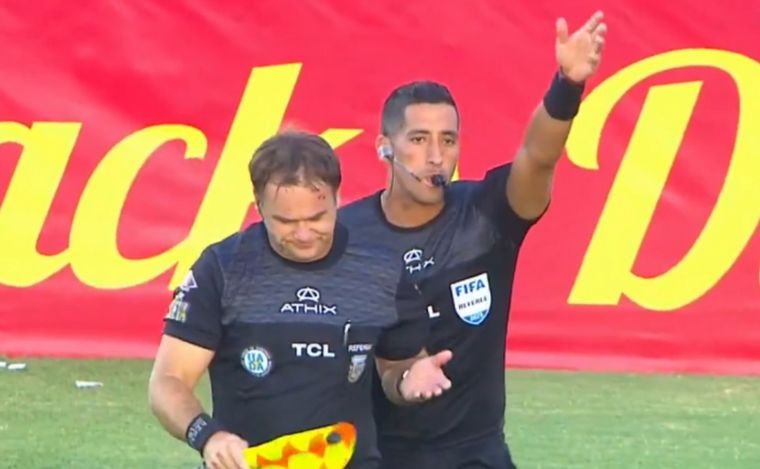 El asistente se acercó a la mitad de la cancha, visiblemente dolorido y con la frente ensangrentada. El árbitro, Yael Falcón Pérez, decidió suspender el partido.