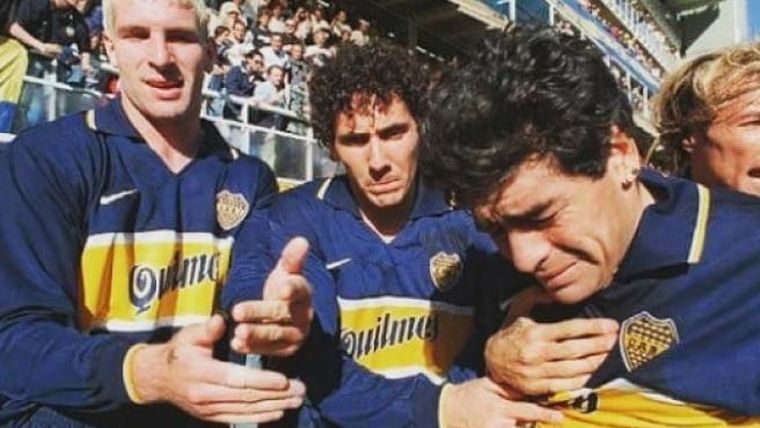 Unos meses después, Maradona le pidió a Mauricio Macri, el presidente de Boca, que me comprara. Era 1997 y ahí tuve el honor de llegar a Boca. Todavía siento que fue una bendición haber podido jugar con él al lado en los últimos meses de su carrera. Obviamente no estaba en la plenitud de su momento de esplendor de los años 80, era otro Maradona. Pero igual te asombraba. Llegaba al entrenamiento y era como si todo se paralizara, y nosotros nada más mirábamos lo que hacía con la pelota, o nos quedábamos viéndolo con la boca abierta mientras clavaba otro tiro libre al ángulo. No exagero para nada: literalmente Diego podía poner la pelota donde él quisiera.