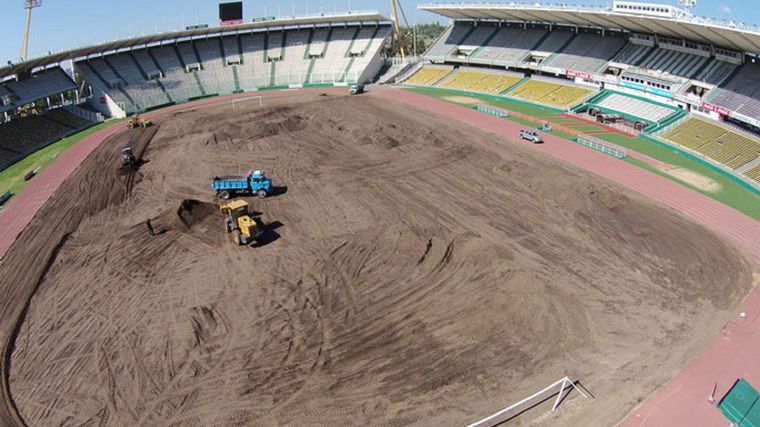El cambio total para terminar con las especulaciones y sacar definitivamente las manchas llegó. Se levantó todo 25 centímetros, debajo del campo se sacaron 200 metros cúbicos de suelo, desechando materiales de implantación del ’78.