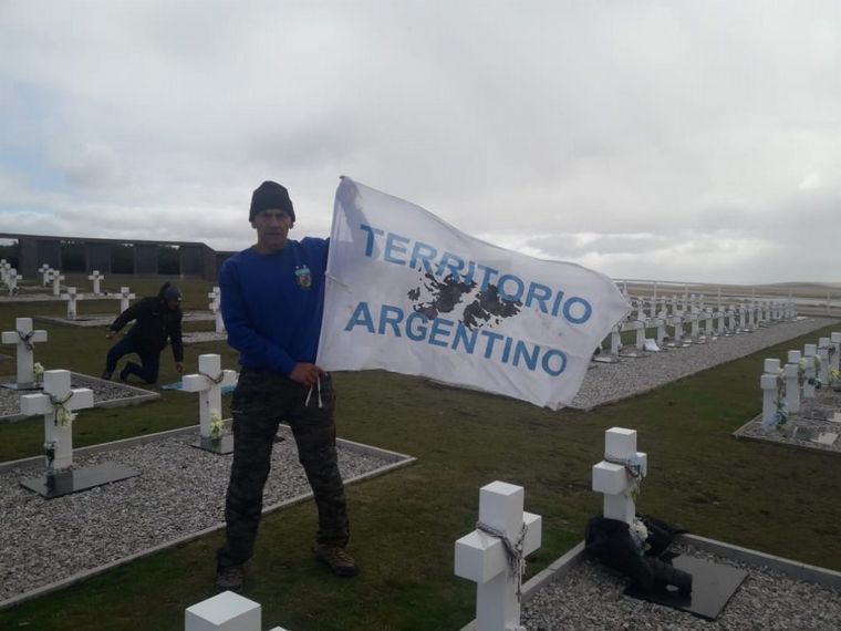Hace poco Escobedo, junto a otros camaradas, volvió a las Islas para rendir homenaje a los Caídos y, al llegar al cementerio, desplegaron una bandera que rezaba “Territorio Argentino”, entonando además el Himno Nacional. Lo que parecía un acto normal, se convirtió en una pesadilla.