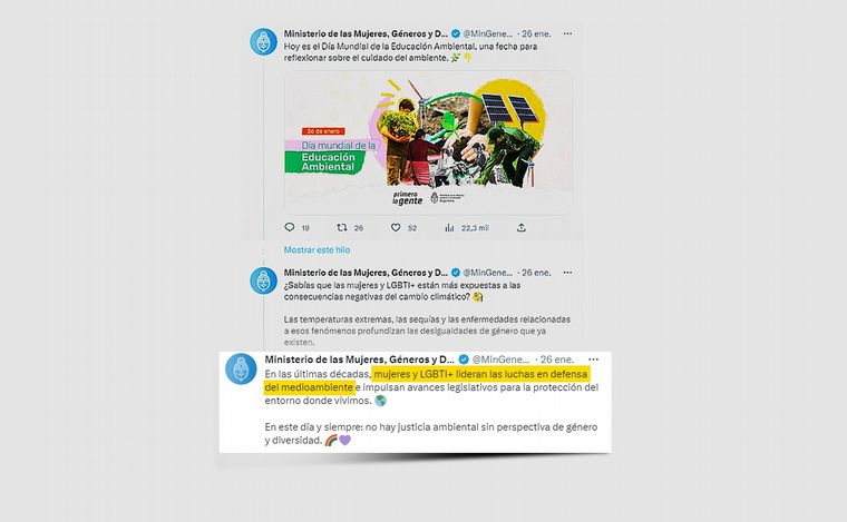 La cuestión es que el Ministerio de las Mujeres, Géneros y Diversidad de la Argentina ayer se sumó a la celebración por el Día Mundial de la Educación Ambiental. Lo hizo con un tuit. Hay gente a sueldo en el Estado argentino para estas cosas.