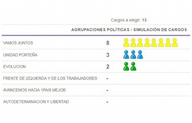 Con estos resultados, Vamos Juntos consiguió ocho de los trece cargos de diputados nacionales; tres fueron para Unidad Porteña, y dos para Evolución.