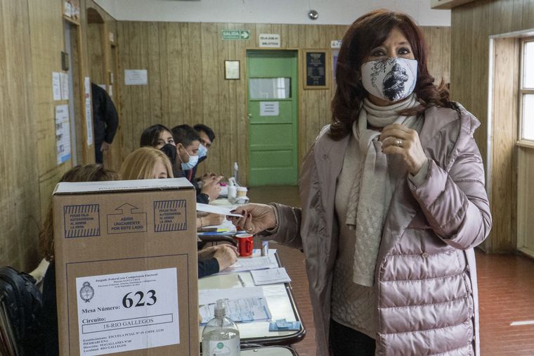 Con una campera rosa por las bajas temperaturas en la Patagonia, la vicepresidenta hizo la fila respectiva a su mesa y luego de varios minutos, cuando fue su turno, saludó a las autoridades de mesa y a los fiscales de todos los partidos políticos.