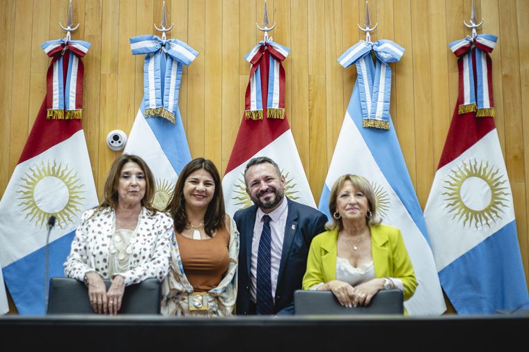 La presidenta provisoria de la legislatura, Nadia Fernández, junto a la defensora de los Derechos de Niños, Niñas y Adolescentes de la Nación, Marisa Graham, y la defensora de los Derechos de Niños, Niñas y Adolescentes de Córdoba, Amelia López.