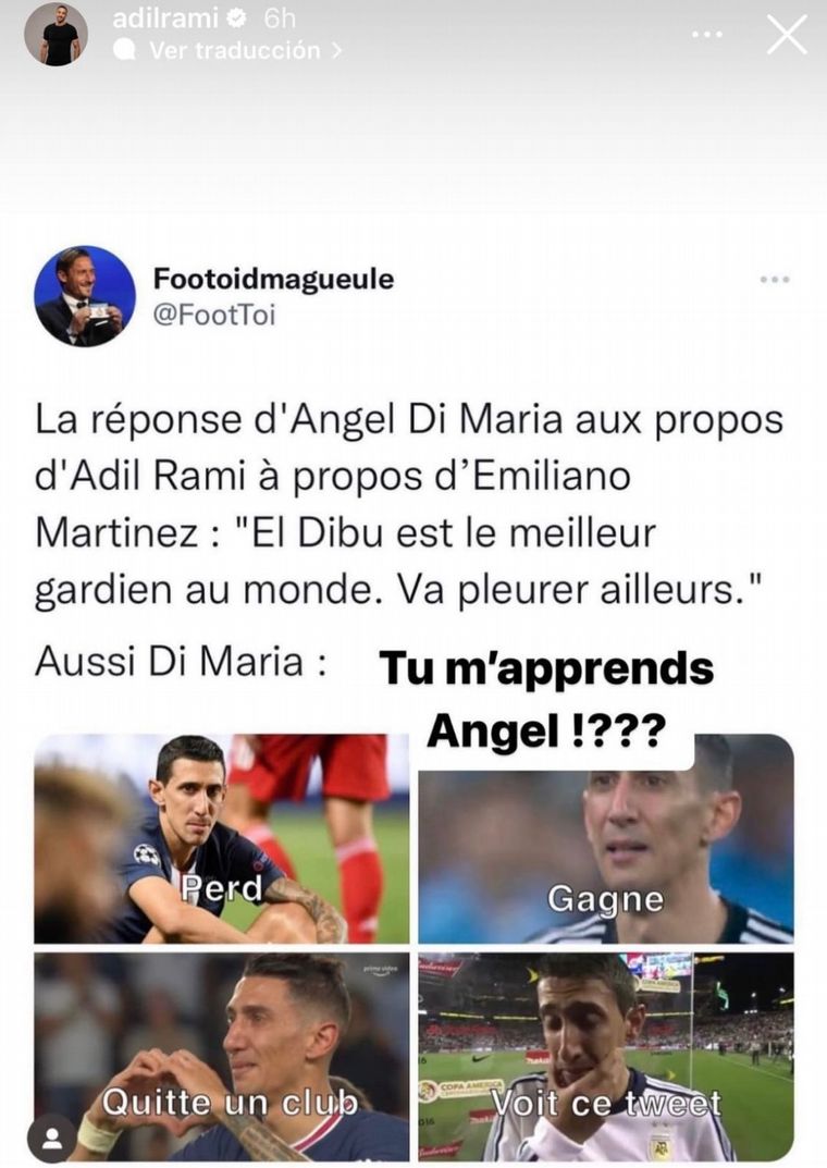 Rami, que ganó el Mundial 2018 sin sumar minutos, puso fotos de Di María llorando en diferentes momentos de su carrera y escribió: "Gana, pierde, se va de un club, mirá esta foto...Tu no aprendes, no?".