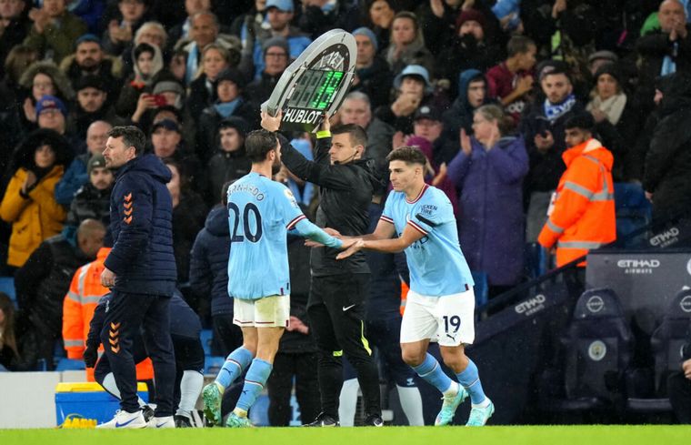 El delantero argentino Julián Álvarez, quien llegó hace 48 horas al Manchester City luego de los festejos en nuestro país por ser campeón del mundo en Qatar 2022, ingresó hoy en los últimos 10 minutos del partido que su equipo empató 1-1 ante Everton por la 18a. fecha de la Premier League inglesa.