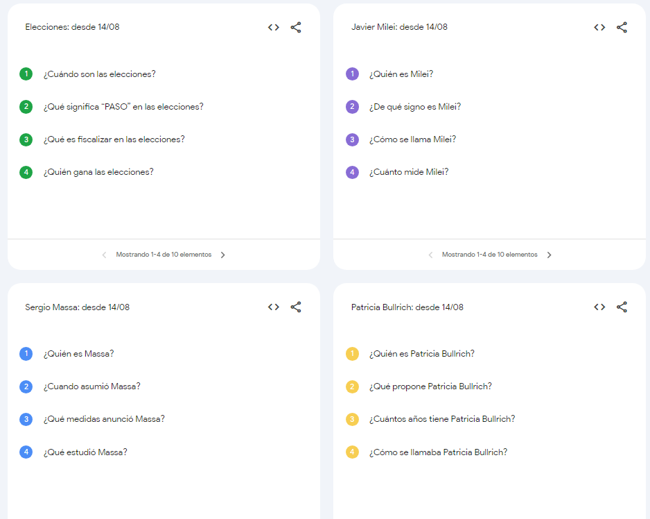 Google, la compañía propietaria del motor de búsqueda más utilizado en internet, dio a conocer qué datos pretende averiguar la gente sobre los cinco dirigentes que, tras las primarias, quedaron en condiciones de participar de la compulsa del 22 de octubre para acceder al despacho de Balcarce 50.