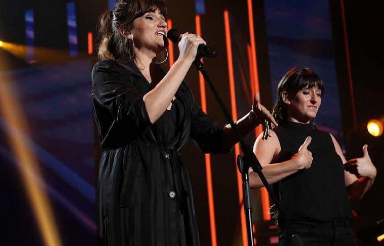 Juntas llevan adelante una actuación plenamente inclusiva donde Bea interpreta con sus manos y gestos la música que crea Rozalén.