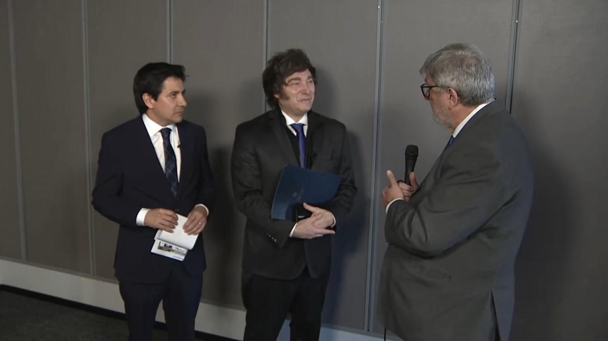 Durante la entrevista con esta emisora, el Presidente se mostró acompañado de Gonzalo Roca, primer candidato de La Libertad Avanza en Córdoba.
