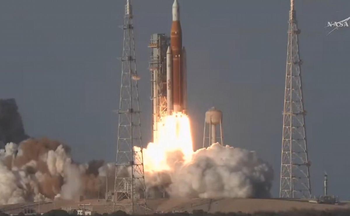 A las 19:35 el cohete Space Launch System con la nave Orion abandonó la plataforma 39B del Centro Espacial Kennedy comenzó su viaje hacia el entorno lunar.