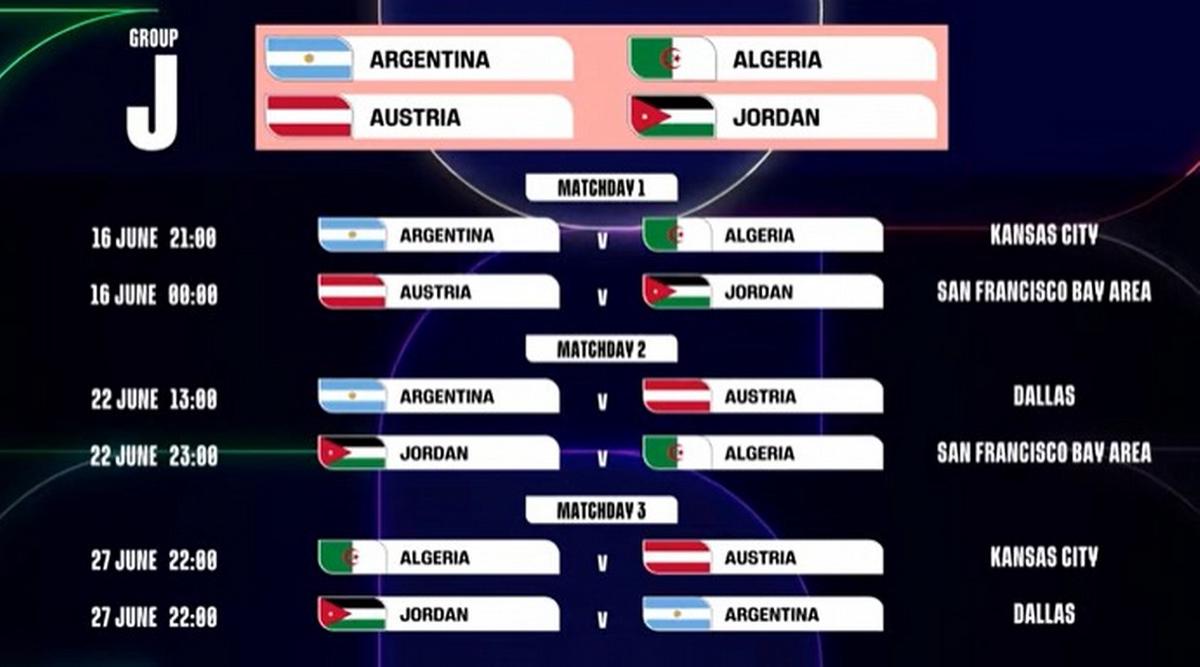El equipo de Scaloni se enfrentará a Argelia en Kansas el 16 de junio (21.00, hora local). En tanto, lo hará con Austria el 22 en Dallas (13.00, hora local) y cerrará la fase de grupos el 27 (22.00, hora local) ante Jordania en Dallas.