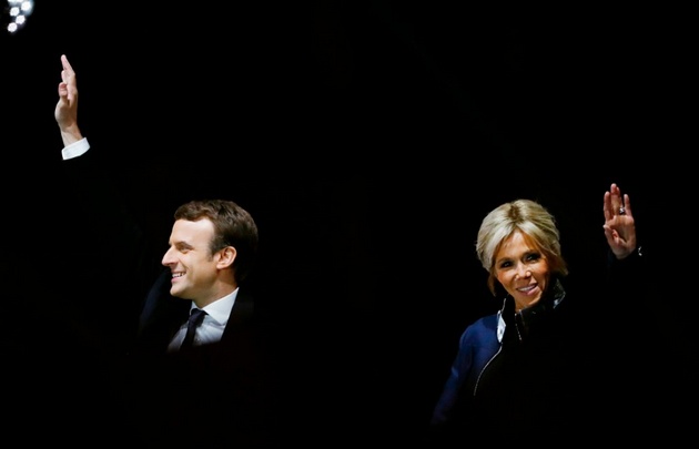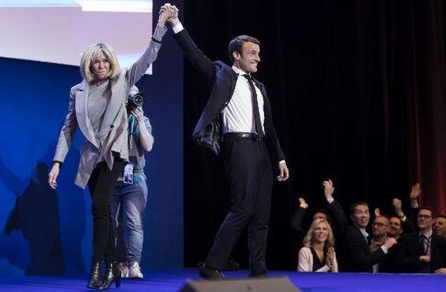 "Brigitte, siempre presente y cada vez más. Sin ella, no sería quien soy", dijo Macron, agarrando a su esposa de la mano ante los militantes entusiasmados la noche en que ganó la primera vuelta de las elecciones presidenciales.