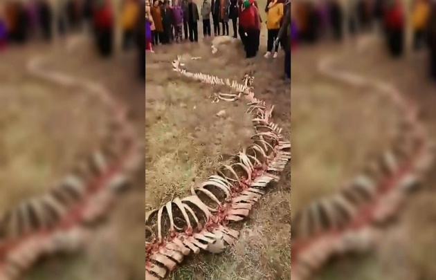 Los vecinos la localidad de Zhangjiakou, ubicada a 118 kilómetros de la capital de China, hallaron un esqueleto de 18 metros de largo, que