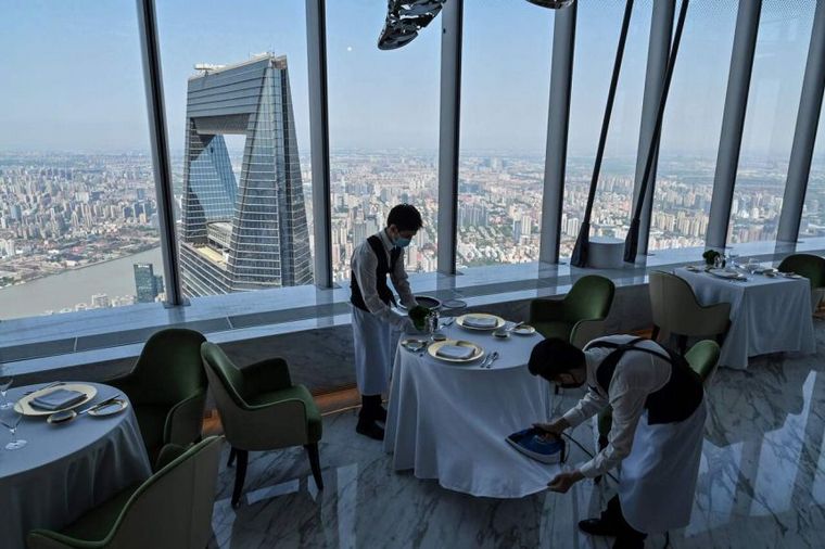 El J Hotel Shanghai Tower abrió sus puertas el pasado sábado y rompió el récord al ubicarse a 632 metros de altura. Tiene 165 habitaciones de lujo con candelabros de cristal y sauna.