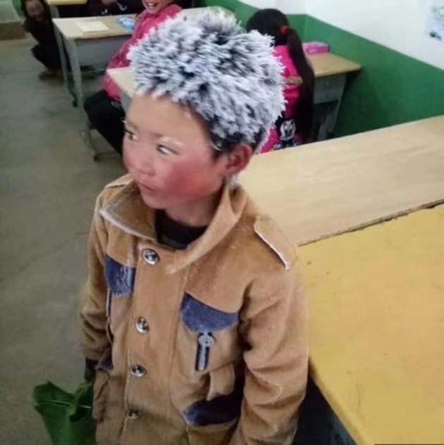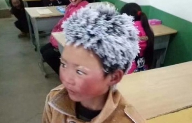 La imagen de un niño con el cabello y las cejas congeladas en una escuela producto de la ola polar que afecta a China conmueve al mundo.