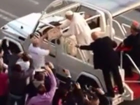 El dueño de la pizzería de Nápoles "Don Ernesto", Enzo Cacciale, saltó una valla, se acercó al papamóvil y le ofreció una pizza al papa durante su visita a la ciudad.