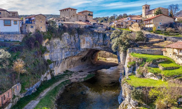 La realidad es que este pequeño pueblo está encima de una piedra que fue degradada durante más de 85 millones de años por el agua del Nela. Eso hizo que se formara un arco y que le diera ese aspecto de puente natural.