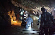 El grupo se encontraba en un saliente situado lejos, en los meandros de la gruta, ubicada en la frontera con Birmania y Laos, donde se quedaron bloqueados el 23 de junio por la subida de las aguas.