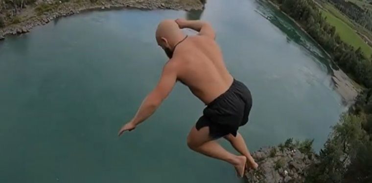 El exmarino se lanzó desde 40,5 metros y cayó con la parte abdominal en las heladas aguas del río Styrn de Noruega. El descenso tuvo una velocidad de casi 100 kilómetros por hora.