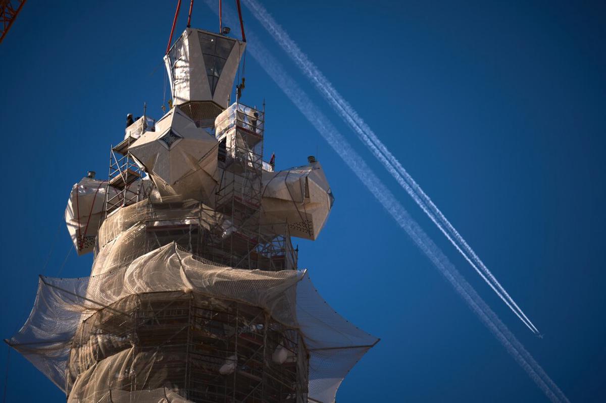 El viernes, una grúa elevó el brazo superior de la cruz, que se erige sobre la Torre de Jesucristo, que ahora se alza como la más alta del mundo. Este avance se produce mientras la construcción aún se encuentra lejos de su finalización, que se espera para los próximos años.