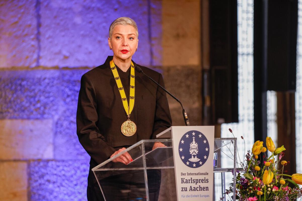 El Premio Internacional Carlomagno fue entregado durante una ceremonia en Aquisgrán, Alemania. Kolesnikova había sido galardonada en 2022, pero su hermana, Tatsiana Khomich, recibió el premio en su nombre debido a su situación.